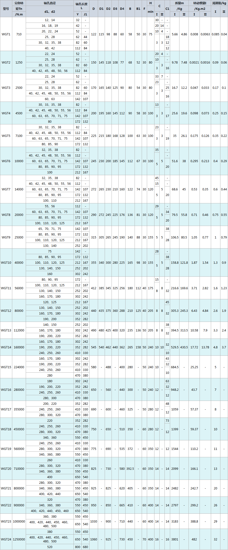 WGT型鼓型齒式聯(lián)軸器屬于剛撓性聯(lián)軸器,齒式聯(lián)軸器是由齒數(shù)相同的內(nèi)齒圈和帶外齒的凸緣半聯(lián)軸器等零件組成。外齒分為直齒和鼓形齒兩種齒形,所謂鼓形齒即為將外齒制成球面,球面中在齒輪軸線上, 齒側(cè)間隙較普通齒輪大,鼓形齒聯(lián)軸器可允許較大的角位移(相關(guān)于直齒聯(lián)軸器),可改善齒的接觸條件,進(jìn)步傳送轉(zhuǎn)矩的才能,延長(zhǎng)運(yùn)用壽命。有角位移時(shí)沿齒寬 的接觸狀態(tài)。具有徑向、軸向和角向等軸線偏向補(bǔ)償才能,具有構(gòu)造緊湊、回轉(zhuǎn)半徑小、承載才能大、傳動(dòng)效率高、噪聲低及維修周期長(zhǎng)等優(yōu)點(diǎn).